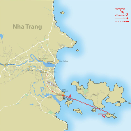 At 9 A.M, we pick you up at your hotel or somewhere covenient to you and transferred to the harbour. Travel down the Cai River to observe the peaceful life of the villages along Nha Trang ' s waterway and witness the daily life of the local people. We visit Ponagar Temples. An outstanding example of Cham architecture, situated on Mount Cu Lao. From here we have offers panoramic views of the surrounding. Get on board the for the leisurely cruise visiting Cu Lao Fish market. This fish market is the place where all the fishermen gather in early morning to deliver sea food which will be distributed all over markets in Nha Trang City. Take a horse carriage to visit a wide range of local handicrafts such as:
