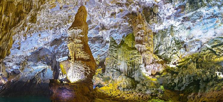 We approach this cave by boat shared boat with others or you charter a private boat with best price. When we get close the cave appears majestic before our eyes with impressive limestone stalactites like a masterpiece of nature.