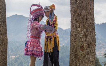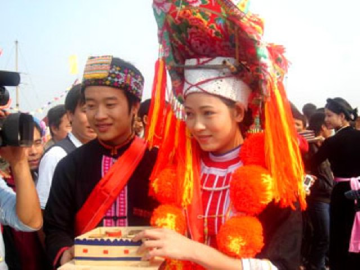 With H’Mong people. Every spring, all the roads in the northwest of Vietnam are colorful with the brocade costumes of young girls. Or attend the wedding ceremony of the couples in the village. The H'mong people often hold festivals in the spring because to them, spring is the season of all things multiplying, the most beautiful weather of the year.