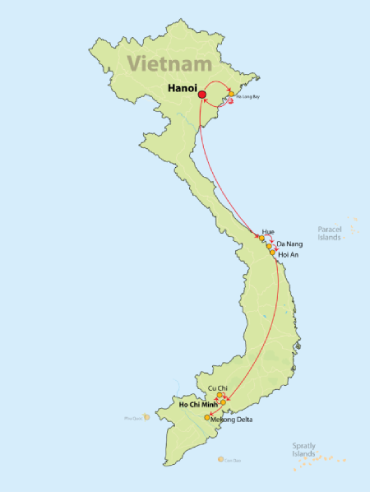 We have carefully selected almost all nice spots  to put in thí tour programme. From historical Hanoi  to amazing Sapa, World Natural Heritage of Halong bay to romantic Hue, exciting bamboo basket boat trip in Hoi An to nice views in Mekong delta. and of cause real local yummy foods